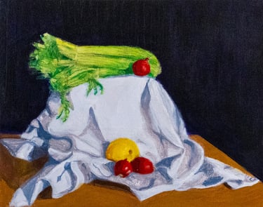 Two Radishes, a Lemon, and a Stock of Celery , 2022 Acrylic on Canvas
